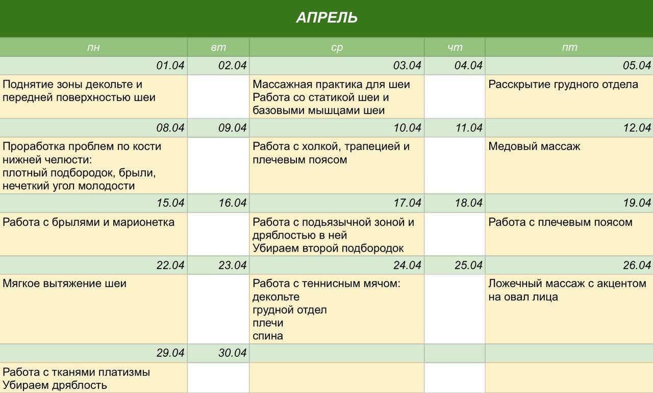 Апрель будет посвящен программе «Шея+овал» и 3-м зонам лица:
